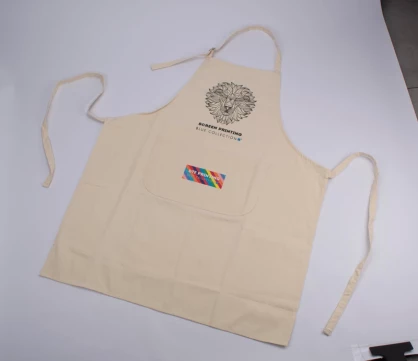 Wykonany z dużą starannością w 100% z bawełny. Posiada regulację paska na szyję oraz kieszeń z przodu. Gramatura bawełny 170 gsm.